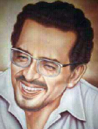 con la mirada visionaria y grave